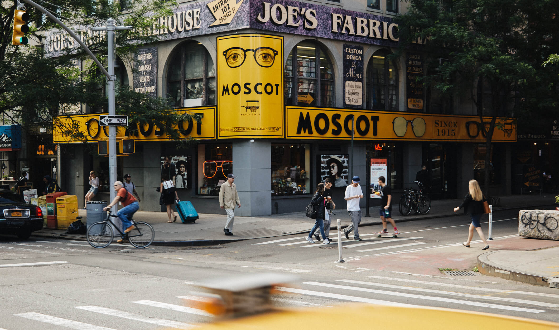 때는 미국의 남북전쟁 후유증이 가시지 않은 1899년, 미국은 경제를 재건하기 위해 수많은 노동력을 필요로 했고, 그와 동시에 수많은 이민자가 유입됩니다. 수많은 이민자 중 한 명인 하이만 모스콧(Hyman Moscot)은 동유럽 출신으로, 광학 관련 일을 하고 있었기에 자연스레 안경에 대해 잘 알고 있었습니다. 재건이 한창이던 미국 내에 안경 수요가 급증할 것이라 생각했던 그는 조그만 수레를 하나 구해 직접 엄선한 안경을 싣고 뉴욕 맨해튼의 오차드 가(Orchard Street)에서 돌아다니며 안경을 판매하기 시작했습니다. 하이만의 예상대로 안경사업이 인기를 끌게 되며 심지어 충성고객이 점점 늘어나게 되고, 16년 후인 1915년 마침내 오차드 스트리트 인근 리빙턴 가(Rivington Street)에 첫 리테일 샵을 열게 됩니다.